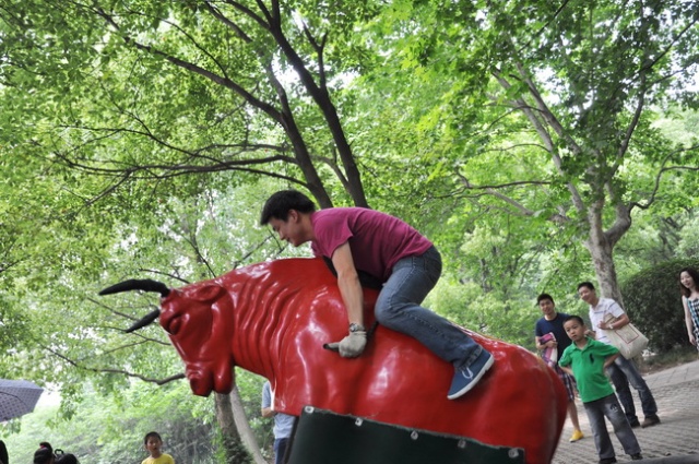 幸好森林公园没有让我过于失望,虽然人比较多,但是还算是不错的,就是玩起来比较累而已。尤其是去挑战里面那个斗牛,结果活生生的被牛玩了,哈哈,我觉得那个玩意就应该叫做“是男人就斗3分钟!”看了N久,基本上没有人玩过了超过一分钟的,我好歹还在上面坚持了约两分钟,已经是很不错的,只不过在上面斗了两分钟,到现在(过去三天了)我还一身酸痛,那个叫累啊。