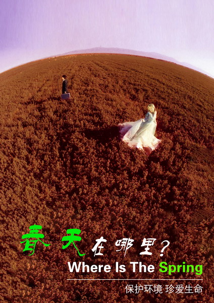 利用枯黄的草和唯美的男女来询问“春天在哪里?”令人思索其中,男女之间寻找春天的美丽,青春的成长,而枯萎的草原则成了鲜明的对比,引发人心灵的震撼。保护环境,珍爱生命,给人明确的警示。
