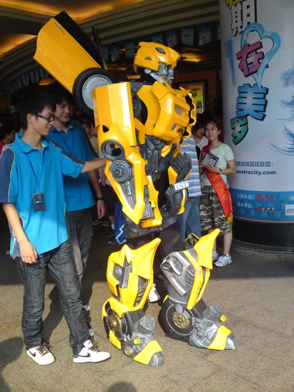 2009/07/05 上海徐家汇美罗城前,变形金刚引起这座城市一番骚动,商家也不遗余力地进行一轮一轮的轰炸,在摄氏32度的空气中,这个大黄蜂里面的人估计要比黄峰蜇都难受吧!