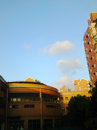 2009/09/02 在上海很难得可以看到一片美丽的蓝天,尤其是在龙华地区那更是难上加难了! 只不过到了秋天,天气的颜色还是会好看几天的,嘿嘿,这不,下午拉开窗前段窗帘,立马见到了这美丽的场景,蓝天白云还有那阳光照射到房子如童话般的境界,感觉还是很好的吧!