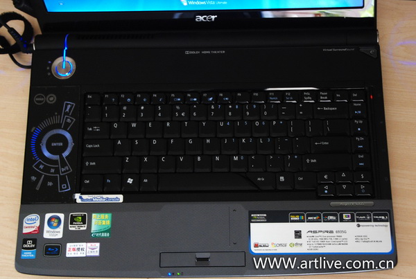 6935G采用了和Acer8930G一样式样的宝马团队开发的蓝宝石模具,相比5930G的稍显细致,5930G一直被人所唾弃的散热问题,6935改进了不少,开了一上午基本上没有发烫的感觉。