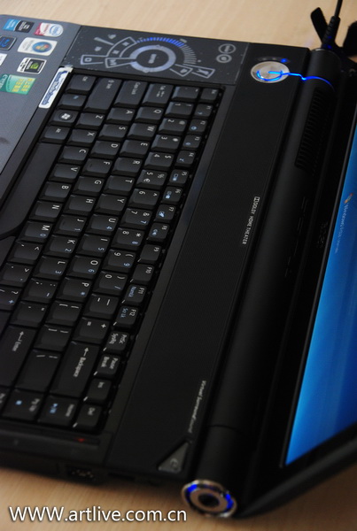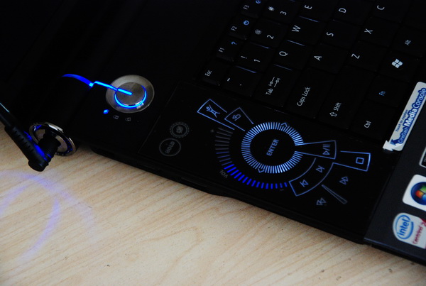 16的本本最大的好处就是键盘空间宽阔,在机器左侧安排的ACER独有的Cine Dash多媒体控制台,可以快速的控制媒体播放。