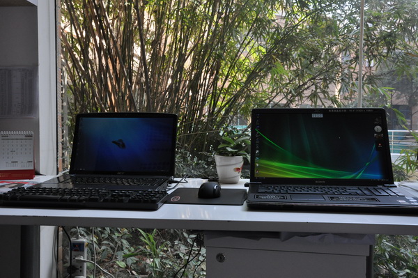 嘿嘿,废话不说,看看公司刚刚买的SONY AW19Q,很好很强大的摄影本本,18.4寸的全色域屏幕简直是惊艳啊!我的Acer 6935本来还看上去很爽的,结果放在AW19旁边直接黯然失色了,唉,对比出真知啊……