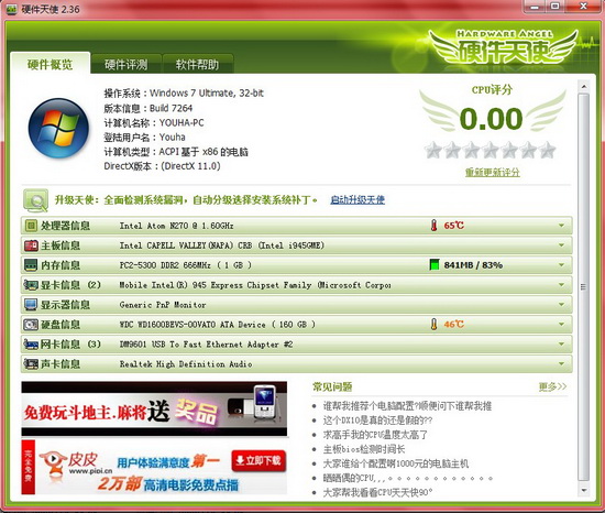 由于时间原因,也没有做过多的评测什么的,随便测试了一下,各位凑活看着先,但是对于上网本,确实也没有什么必要来做性能评测了吧,嘿嘿