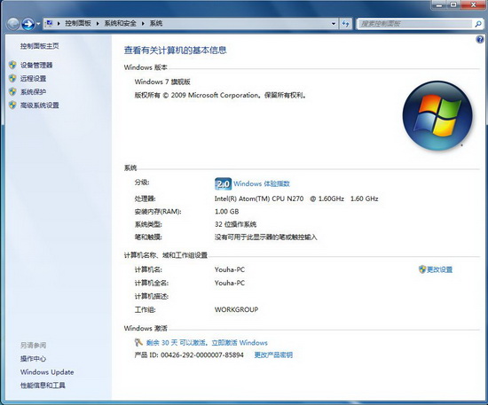 运行Windows 7还是很流畅的,这还是1G的内存哦,呵呵。