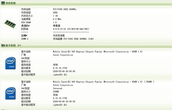 显卡:INTEL GM950图形显示卡,动态显存最大支持224M
