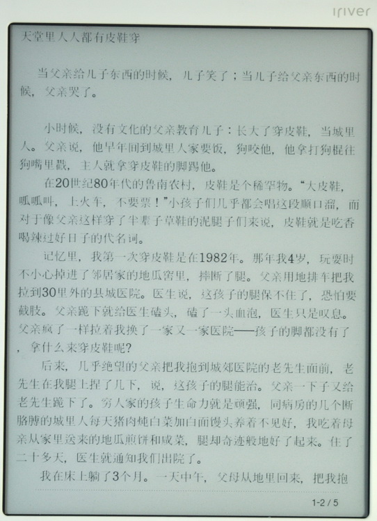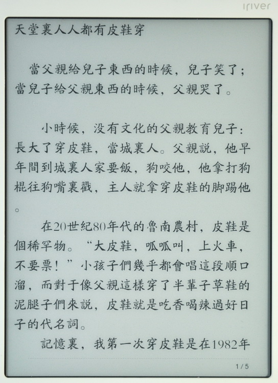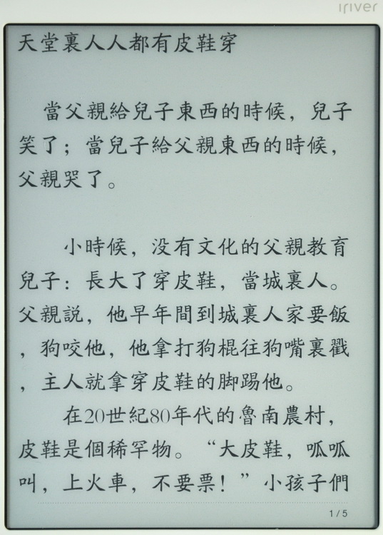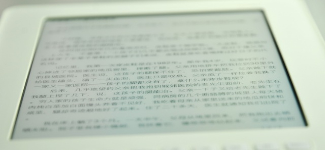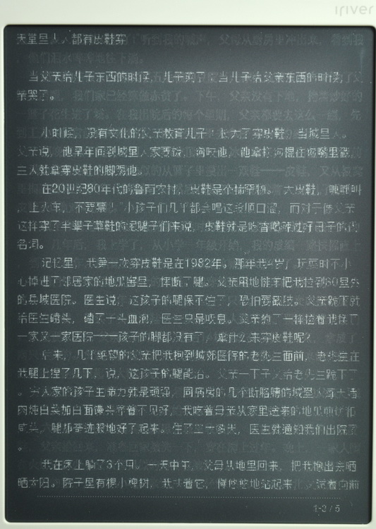 在测试中我们惊喜的发现iriver story的显示角度非常优秀,完全可以跟印刷书籍相媲美了,实现任意角度阅读都清晰的效果。