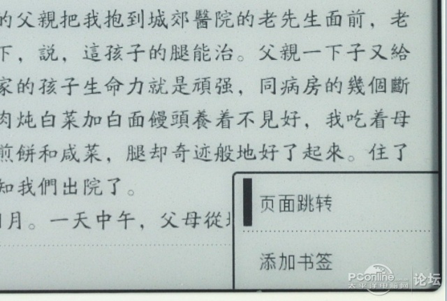在阅读TXT文档时,按“option”能够调出功能菜单,但是选项非常少,只有跳转页面和添加书签两个最基本的选项。