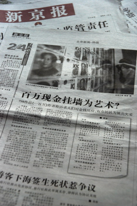 报纸上报道的798一艺术工作室用金钱的堆放来做艺术展览,真的是对艺术的玷污。