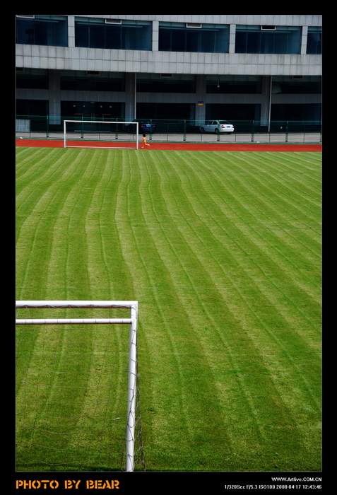 贺龙体育馆的足球场,草地绿油油的