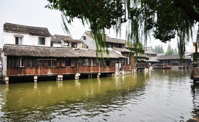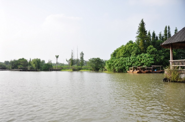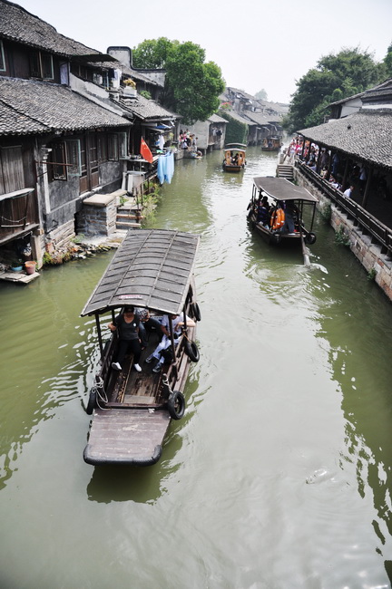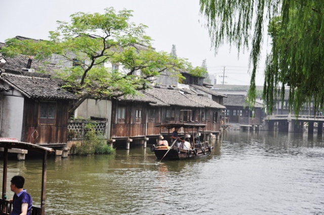 验了票进了西栅,有两条路进入正式景区,一条水路一条陆路,都是免费了,我们选择了水路进去,大约乘坐3分钟船就到了。