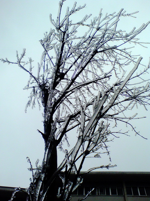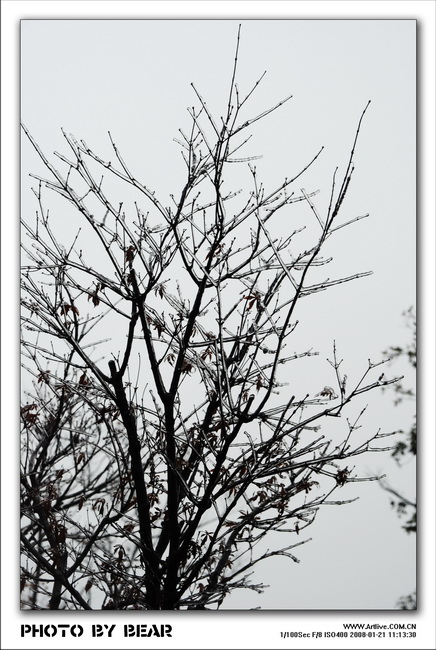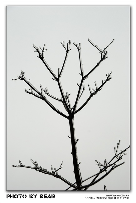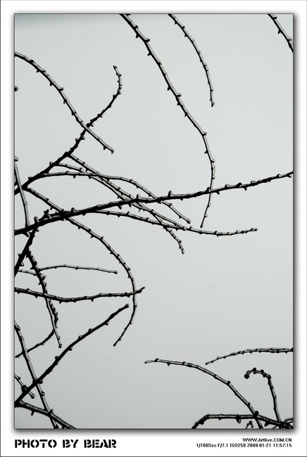 看到这些树枝,会令人想到毛主席说的:银装素裹,分外妖娆。