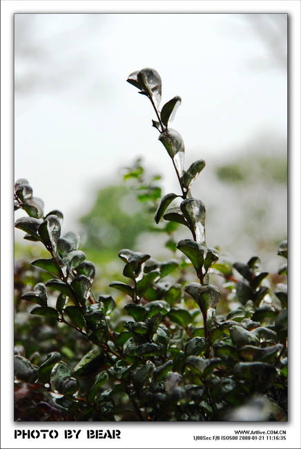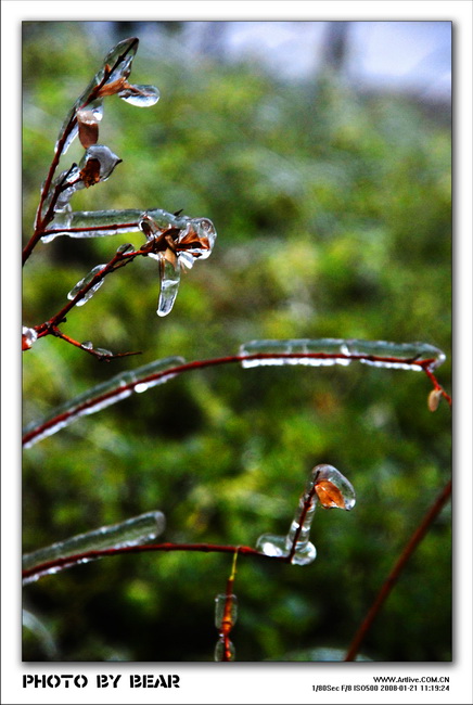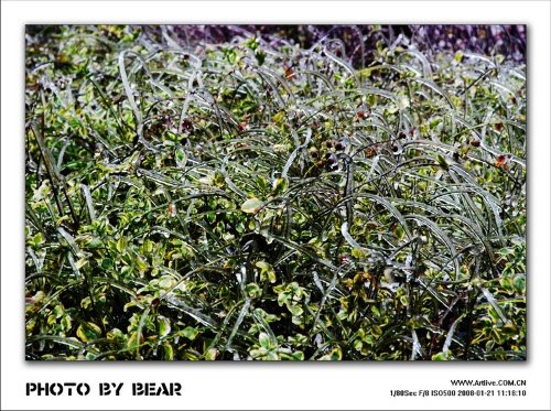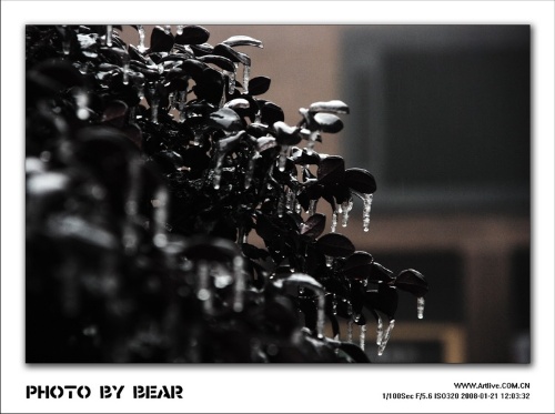 回来的时候,雪已经融化了,但是由于天冷的原因地面上,树枝上都结了厚厚的一层冰,煞是好看。虽然冬天的早觉是最好睡的,但是这样的美景,也让我无法抗拒,一大早冒着寒风的低温,背着相机出门拍这冰天里的景色。所有东西都被裹上了一层厚厚的冰凌,感觉有点像琥珀,很美很美。在零下几度的冰天里面,没有带手套,没有带任何防寒设备,相机镜头马上就结霜了,用仅有的体温温开今天的雾霜,在用冻木的手按动冰冷的快门,那种感觉简直难以用言语形容,但是感觉还是非常兴奋的,因为可以感受到在这冰天雪地里面自己那颗温暖的心激情澎湃。