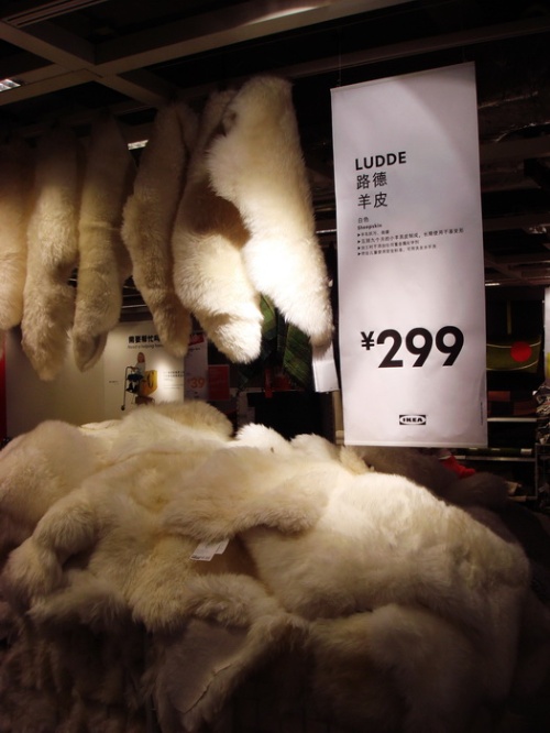 比较不错的羊皮,哈,可惜价格暴涨了100元,去年还只要199的。但是听说这些羊皮都是从只有几个月的羊羔身上扒下来的,有点残忍。